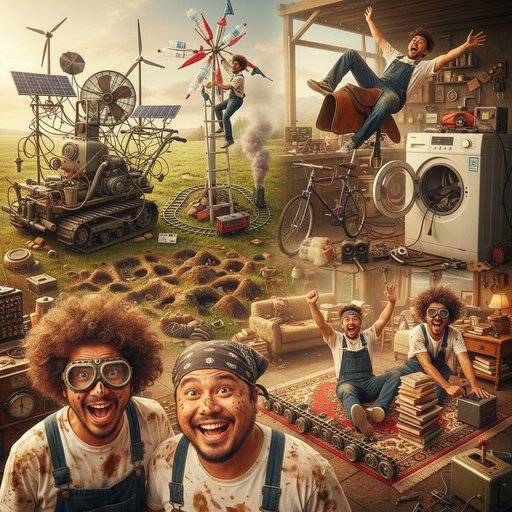 阿呆和阿瓜是一对非常要好的朋友,他们觉得凭借自己的力量可以修理一切,他们的生活也充满了欢乐:把需要接线的割草机改成太阳能无线自动型、为了抓老鼠在花园里到处打洞、把滚筒洗衣机改造成斗牛机、为电动小火车制作风力发电机、为了轻松搬运图书把地毯变成自动传送带······在每一次的改造中,结果并非总是成功,但是呆瓜兄弟两个找到了自己动手的无限乐趣,也收获了无限自信和挑战的勇气