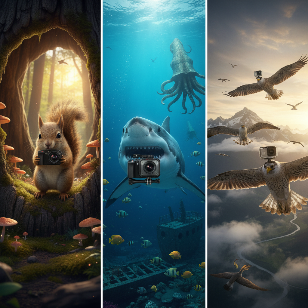 有没有想过,如果相机交到动物手上,世界会是什么样?看一只松鼠拍下它的树洞豪宅,听一条鲨鱼用镜头讲讲深海八卦,或者跟飞鸟一起体验真正的「第一视角」航拍。这不仅是一场视觉奇观,更是一次换位思考。原来,地球最牛的摄影师,根本不是人类!