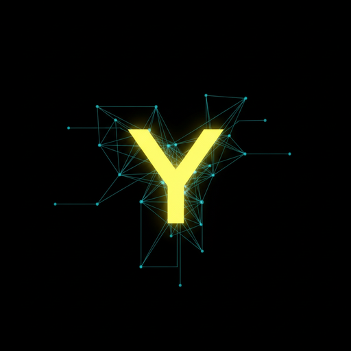 * 深黑背景,中心是一个发光的荧光黄 “Y” 符号。